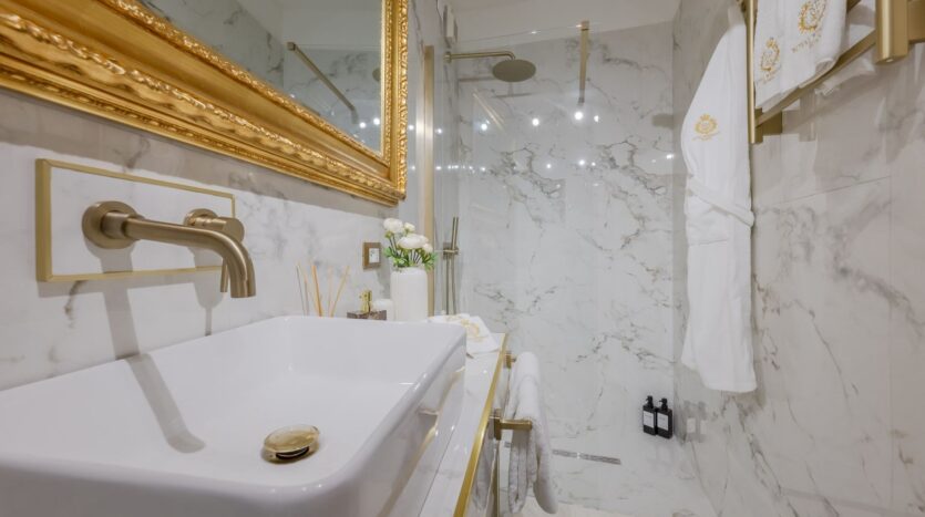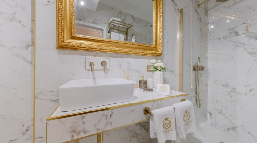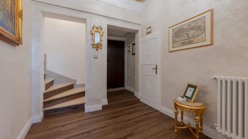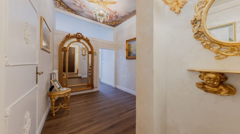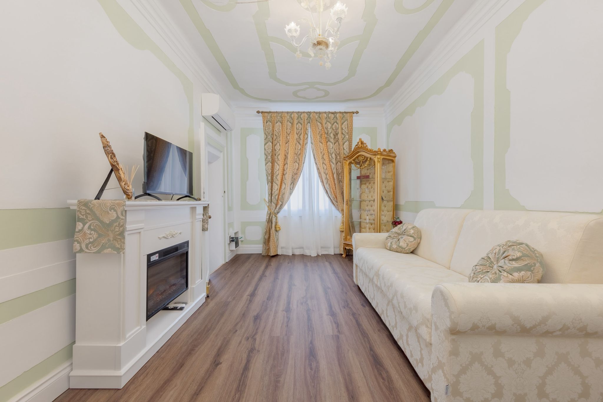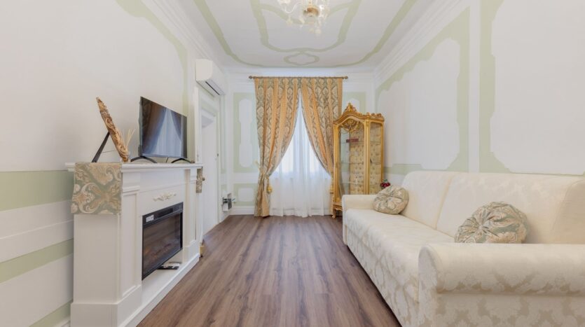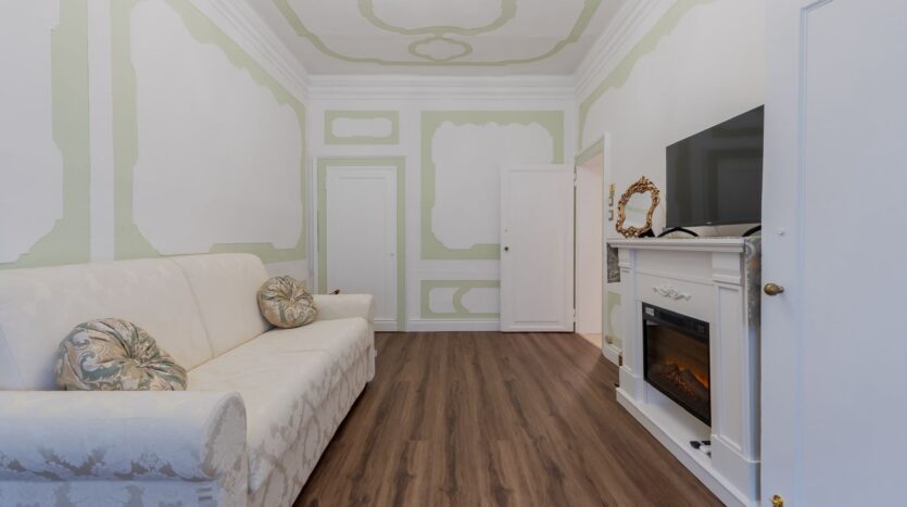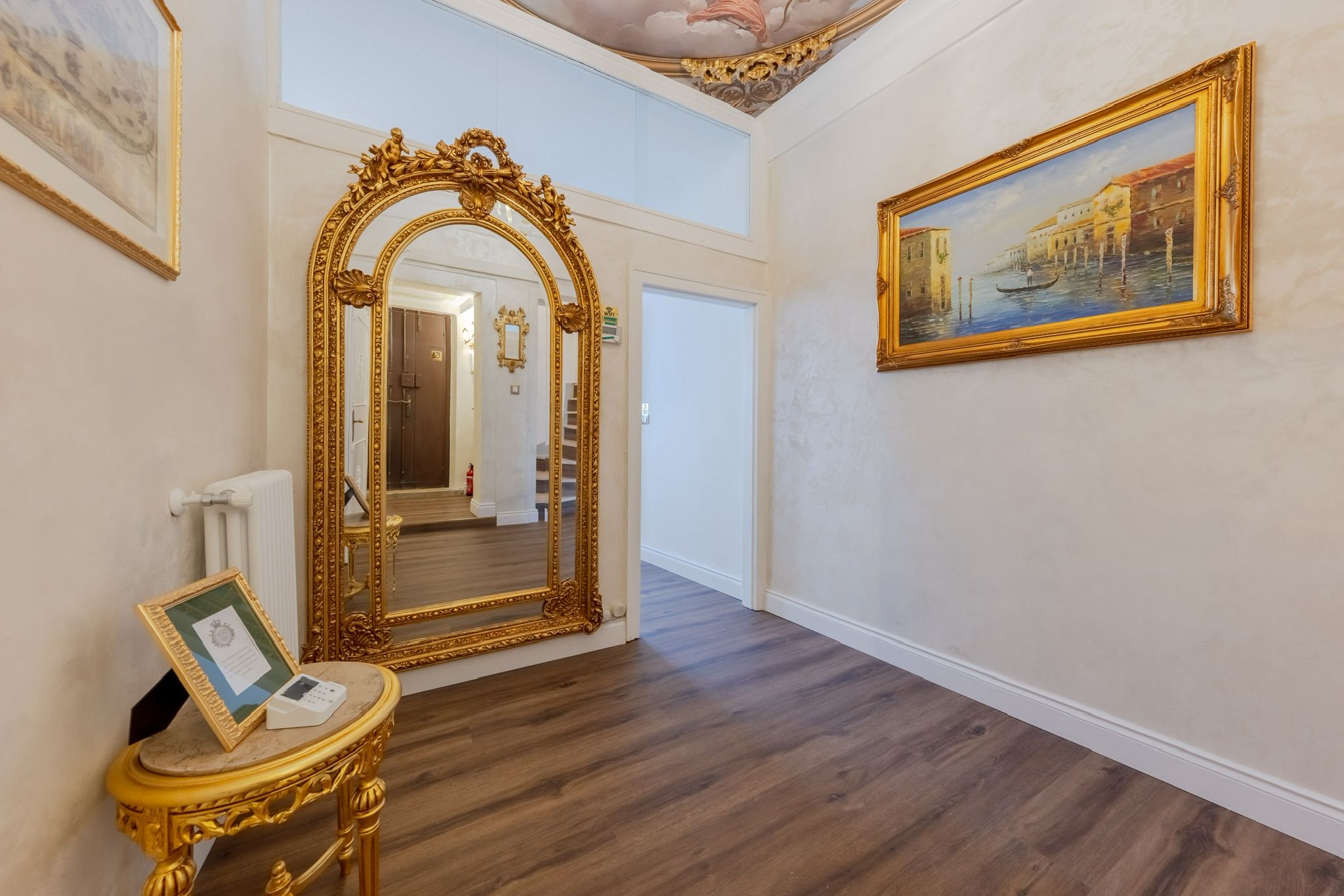 Dotazioni: aria condizionata di nuova generazione con Wi-Fi, riscaldamento autonomo, caldaia a condensazione. Ristrutturazione recente integrale (impianti e arredi). Arredo di pregio, tendaggi artigianali di altissima manifattura, lampadari in vetro di Murano con foglia d’oro 24 kt. Nella suite, soffitti originali con stucchi e decori nei toni verde salvia.