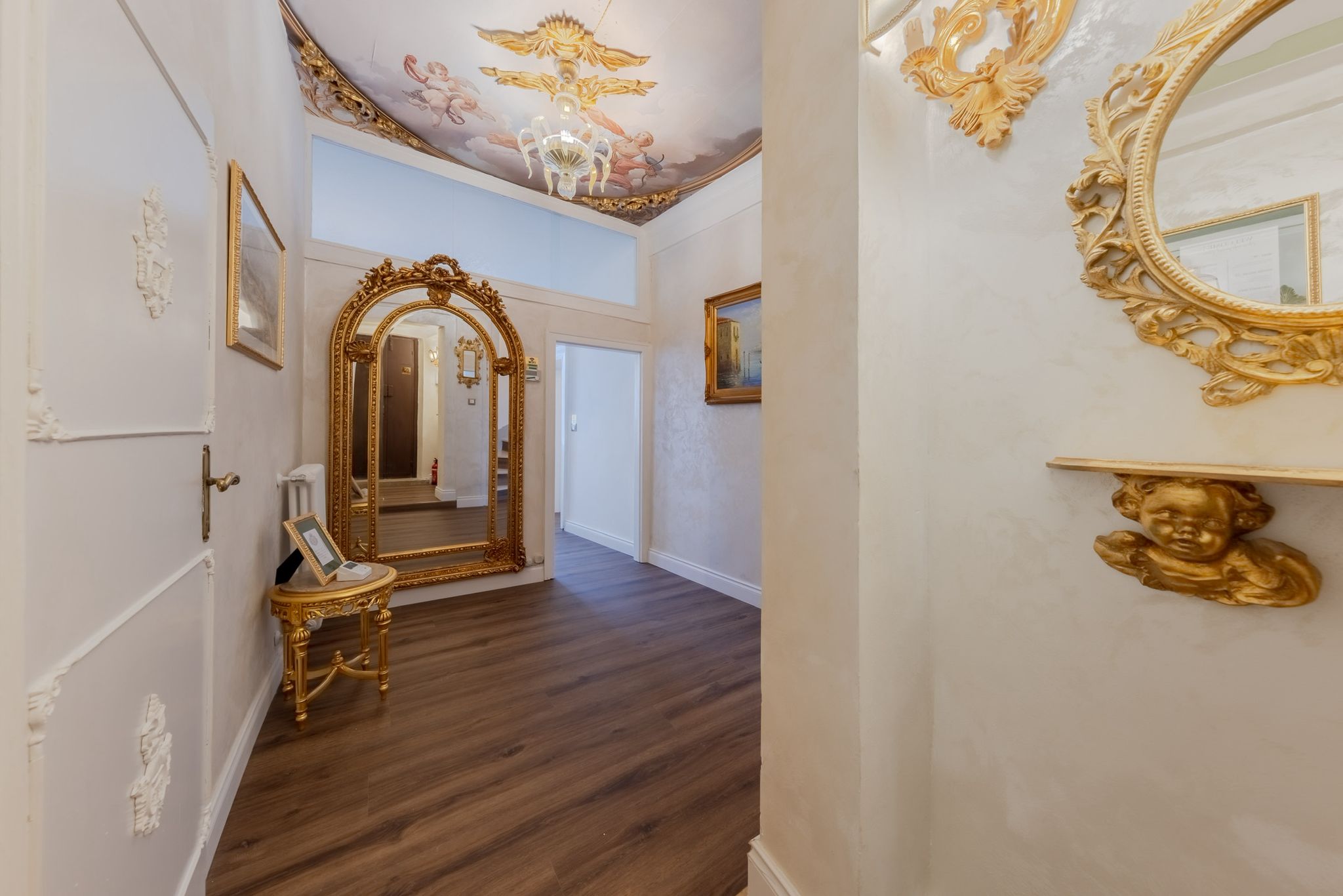 Elegante appartamento di 92 mq commerciali, situato al primo piano dello storico Palazzo Widmann, in zona prestigiosa di Venezia con vista aperta sul campo (nessuna facciata a ridosso delle finestre). L’immobile è vincolato dalla Sovrintendenza dei Beni Culturali, sia internamente che esternamente.